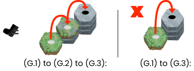 Example B: Any tile edge that has a height difference of (1), is considered a *step. Steps are an even terrain gradation that can allow attacks to pass over uninterrupted.