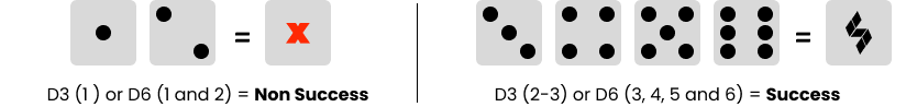 First: The User will make a HIT_Roll where (X) = the amount of action dice rolled. Total up all Success’s and the result is the Hit Chance.