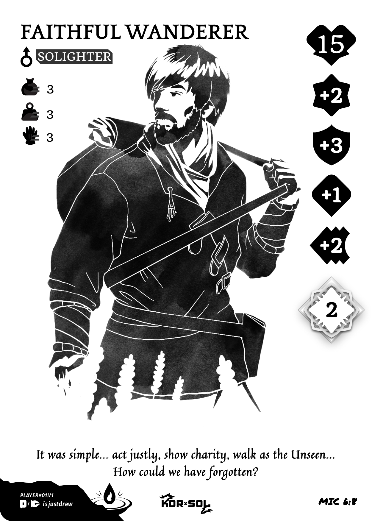 A Solighter represents the character that the players will use during the game. Each Solighter can have a unique combination of Traits or Attributes to add variety to encounters.