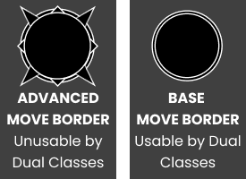 Base combat moves ar designated by a circular border. These combat moves are available to both matching Single and Dual Classes.