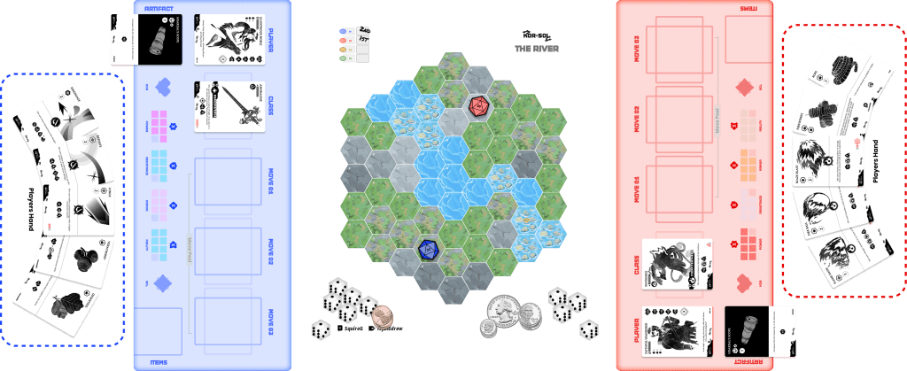 KORxSOL is a FREE – PRINT AND PLAY Fantasy Tabletop Card and Dice Skirmish Game, where players customize character’s and battle it out! Will you wield a Solbound and overcome your foes with an ethereal blade -or- Will you partner with a Solbeast and conjure the Elements. Gameplay takes inspiration from digital turn based RPGs like Pokémon and Final Fantasy and puts that into card form for your table. All print materials needed to play are available here on the official korxsol.com website, with New Characters, Classes, and Items added as they are completed! Follow us on Instagram @isjustdrew or join the KORxSOL discord to stay informed as updates drop!